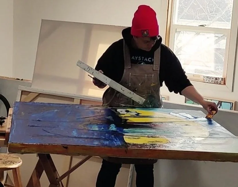 I am inspired by the ever-changing movements of nature—the way light shifts, trees fall, paths wear, and waterways flow. My work captures these moments through a playful and intuitive process that layers color, shape, and line to evoke the rich textures and rhythms of the natural world. Each piece tells a story of transformation and resilience, inviting viewers to reflect on the balance and strength within the environment. Through my art, I hope to foster a deeper appreciation for the beauty and complexity of the landscapes that surround us.